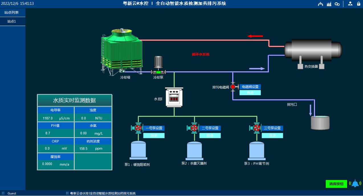 我司經(jīng)過幾年的研發(fā)后,推出了屬于我們自己的粵新云@水控Ⅰ智能終端設(shè)備,實(shí)現(xiàn)了對循環(huán)冷卻水的各項(xiàng)指標(biāo)的在線檢測(pH、電導(dǎo)率、藥劑濃度、余氯、ORP、濁度、腐蝕率等)以及遠(yuǎn)程查看和遠(yuǎn)程控制。