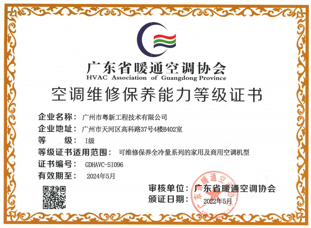 廣州粵新公司通過廣東省暖通空調協會維保資質評審